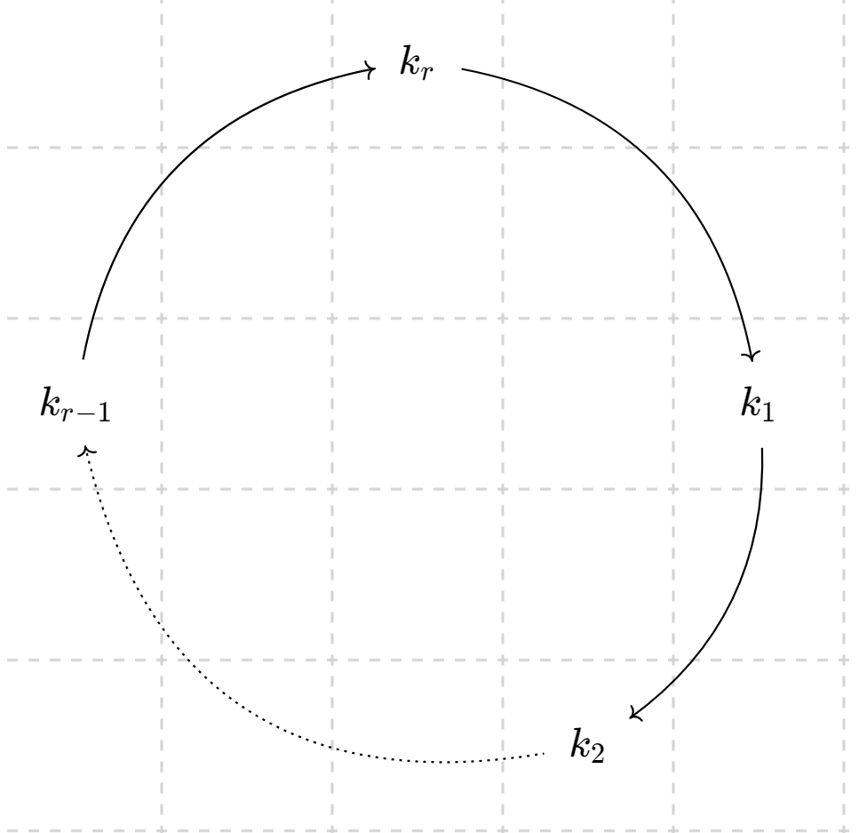 \end{pmatrix}$$ 로 나타내고 이것을 '길이가 $k$ 인 순환(Cycle of length $k$)' 또는 '$k$ 순환($k$-cycle)' 이라 한다.