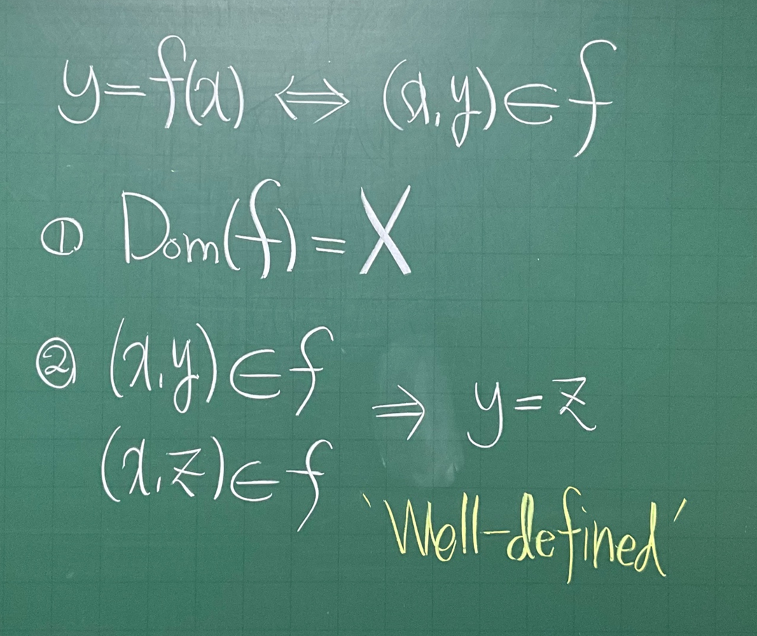 두번째 조건이 좀 더 중요한데, 이는 흔히 '잘 정의됨(Well-defined)'로 불리는 조건으로 고학년 과목, 특히 대수학에서 빈번히 확인해야 하는 조건으로 우리가 어떤 함수를 만들고자 할 때 그것이 함수의 형태가 되지 않을 수 있음을 방지하기 위해 꼭 확인해야 하는 조건입니다. 이 두번째 조건은 제가 위에 박스에 적은 것 외에