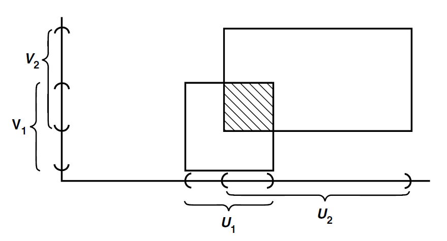 ii) 교집합 조건 : $X\times Y$ 의 두 기저원소 $U_1\times V_1$ 과 $U_2\times V_2$ 를 생각하자. 그러면