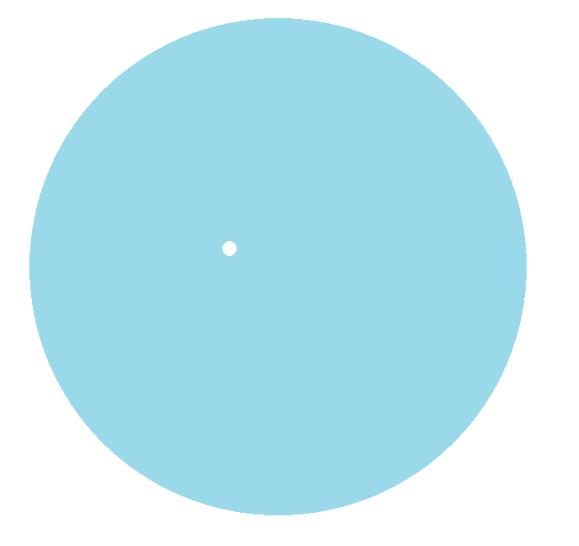 다시 말해 극한점의 개념은 $A$ 내의 점들이 $x$ 주변에 얼마나 밀집해있는지를 나타내며, 이는 $x$ 자체의 포함 여부와 독립적이라는 것을 강조하기 위해, $\overline{A-\{x\}}$ 의 개념으로 정의됨을 알 수 있습니다. 만일 $x$ 를 제외시키지 않는 방식으로 극한점 여부를 따진다면, 위 그림과 같이 파란색 영역 내부에 있는 점이나, 파란색 외부에 있는 점이나 차이가 존재하지 않게 되므로 의미가 없는 정의가 될 것입니다. 위와 같이 흰색 점도 하늘색 영역에 의해 둘러싸여 있기 때문에 흰색 점은 하늘색 영역을 $A$ 라고 할 때 $A$ 의 집적점이 되도록 해야 잘 정의된 셈이지요. 위상수학적으로 확장하면, 어떤 점 $x\in X$ 가 $A$ 의 집적점이라는 것은, $A$ 의 몇몇 원소들과는 '연결'되어 있을 수 있음을 시사한다는 것입니다. 위상수학에서는 연결성과 근접성의 개념이 매우 중요하다는 사실을 다시 한 번 떠올려 보면 좋을 것 같습니다.
