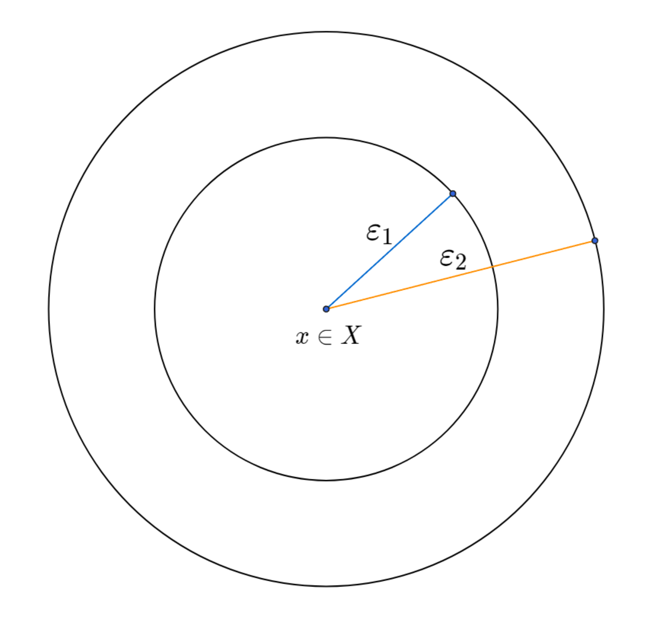 이 정의를 보면, 일반적으로 미적분학에서 했었던 수열의 극한 정의와 크게 다를 바가 없음을 알아차릴 수 있어야 합니다. 거창하게 $d(x_n, x)< \varepsilon$ 이라고 표현하기는 했지만, 이는 1차원적 개념을 약간 2,3 차원스럽게 변형한 수준임을 직관적으로 납득할 수 있을 것이기 때문입니다.2