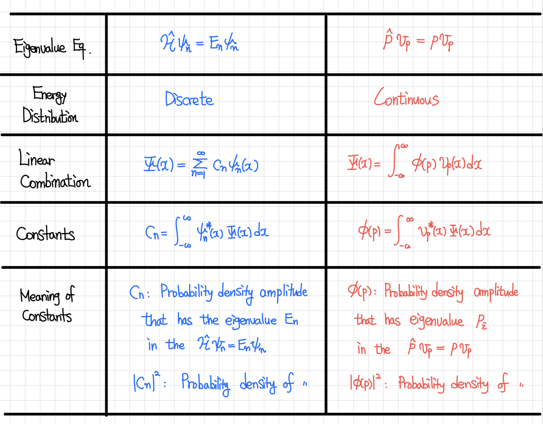 2) 따라서 해밀토니안 연산자의 고유값 방정식을 풀었을 때 발생하는 해의 구조가 이산적이고, $\Psi(x)=\displaystyle\sum_{n=1}^{\infty}c_n\psi_n(x)$ 와 같이 적었지만, 운동량 연산자의 해